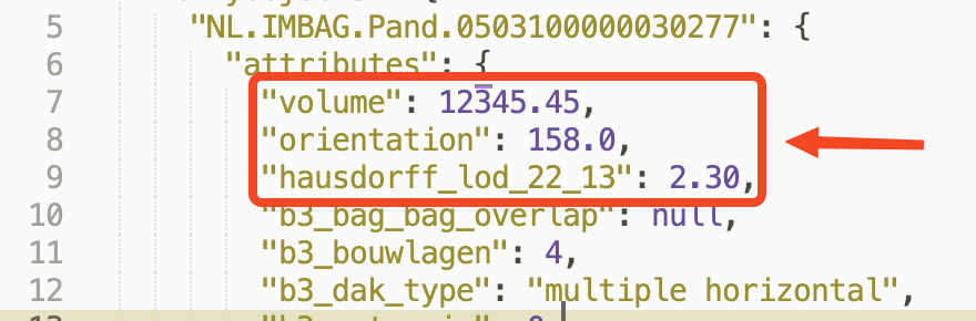 For this assignment, you are asked to calculate a few useful attributes (those can be useful for others when processing the 3DBAG files) and to add them to the file.